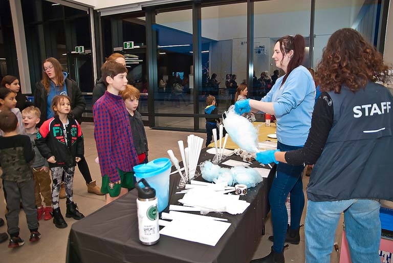 Making and serving cotton candy at the 2024 New Year's Eve at the Orillia Recreation Centre