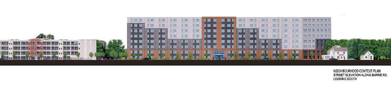 Any zoning change Council agrees to will come with a holding provision until the developer gets a record of site condition from the ministry of the environment. The City also wants a new shadow study and efforts to reduce shadows on neighbouring properties across the street and to the west (which may result in some change to the structure). The developer is also being asked to submit a landscape plan with the objective of planting trees along the side bordering Barrie Road.