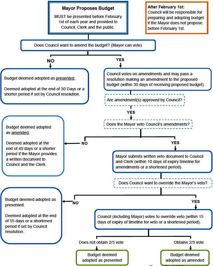 Now, the new method requires council to submit changes they wish to make within the next week, to be followed by another special meeting a week after that. The Mayor then has another week to accept or veto council’s decision, and then council gets another special meeting if they want to override a veto.