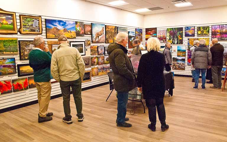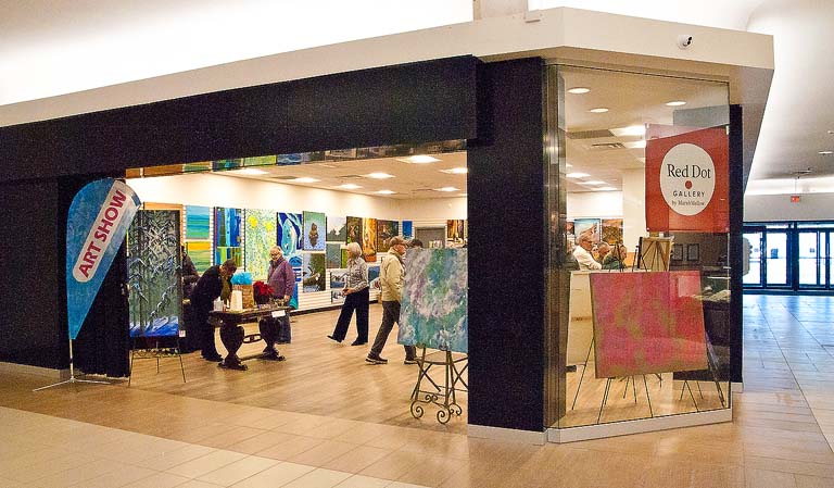 Red Dot Gallery opened in the Orillia Square Mall last Tuesday. Five artists, Raune-lea Marshall, Deby Melillo Mike Bailey, Linda Gidora and Norman Robert Catchpole have their stuff hanging around, and layin’ about. They had a good sized turnout for opening day, and sold a few paintings before the first hour was up, and while I was there.