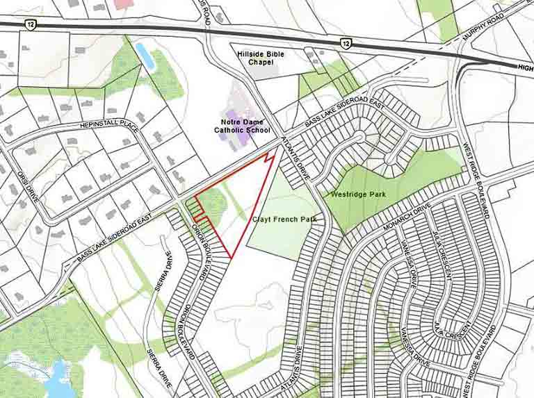 There are no motions on the agenda. Of the by-laws listed two are worthy of attention. One is to remove a zoning holding restriction for property on Bass Lake Side Road opposite Notre Dame Catholic School owned by the Simcoe County District School Board on which a new school is proposed to be built.