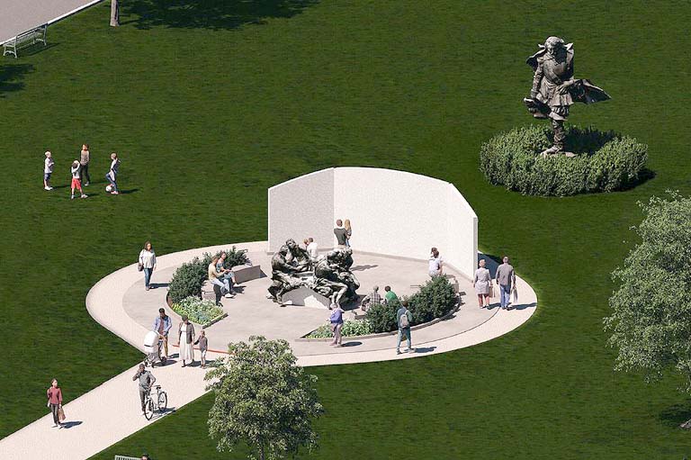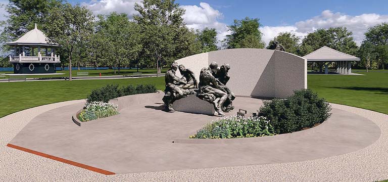 “The original Samuel de Champlain monument was designed and installed in a different era. The current era requires us to present a more balanced view of the past, one that brings pride to our children and grandchildren. This re-imagined statuary honours the significant contributions of the Chippewas of Rama, the Huron-Wendat and the Anishinaabeg. Placing Samuel de Champlain in the distance behind the centre wall structure and removing the religious figure is a metaphor signaling the desire and need to move forward to a new era of community and friendship.”