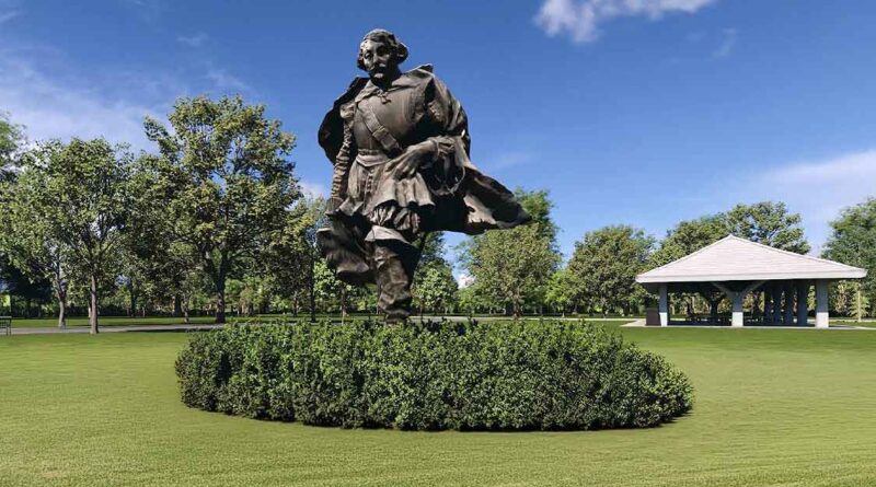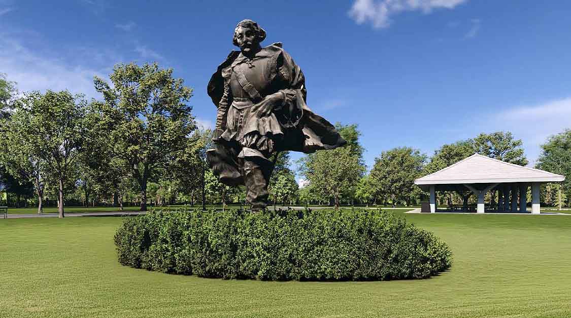 If it is restored in the park as drawings suggest, every inch away from its original location will be best. Also it should be a consideration to spot weld his sword in place. We wouldn’t want to mount another dragnet to find it (Champlain lost more than one sword on his journeys).